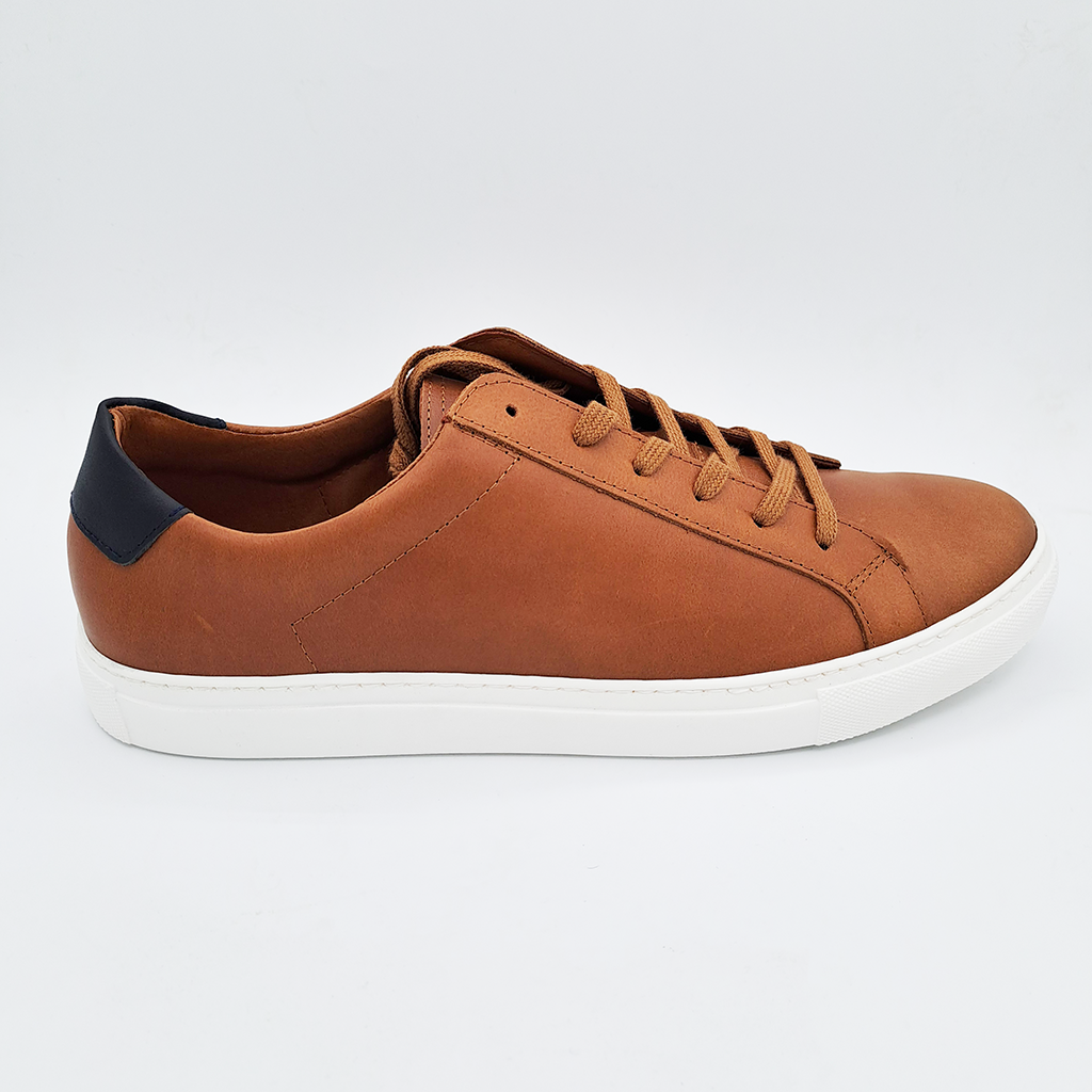 Detalle del refuerzo de talón en piel, de color cuero azul marino.