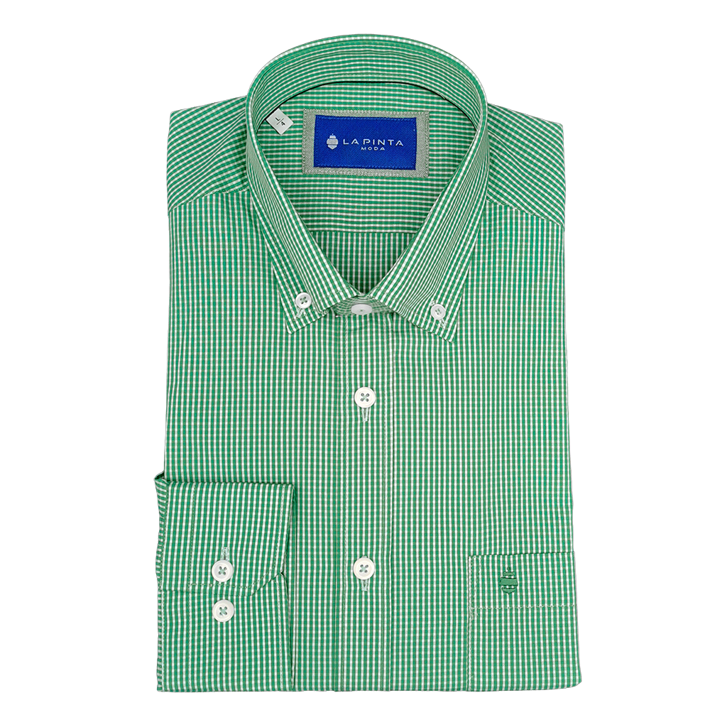 Algodón con cuadros pequeños tipi "vichy" en color verde oscuro.