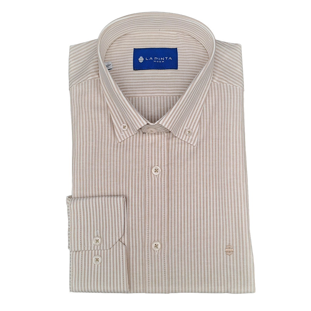 Raya "candela" en algodón tipo Oxford (pinpoint oxford); el pinpoint oxford es más ligero que el normal, pero mantiene la suavidad y el efecto sedoso típico de la tela Oxford.